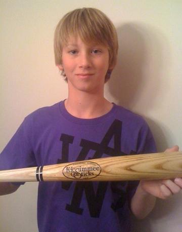 Collin's Custom Club - Here's Collin with his new Major League Wood. This Kissimmee Sticks Model 118, unit number 0000002 is going to be the bat that goes along for the ride as Collin crushes the baseball in 2011. This bat is Flame tempered, power boned, and double dipped to help Collin tear the seams off the baseball. Thanks for taking em' deep Collin!